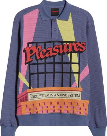 Neon spotlights keep every eye on you in a waffle-knit polo made of soft, breathable cotton with music-themed artwork and an '80s-throwback aesthetic. Wear it whether you're dressing for paparazzi or dancing in the dark to your own favorite beats.