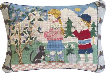 Spring Children Vintage Needlepoint Accent Pillow 12" x 16"