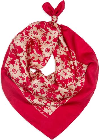 Put a bold flourish on your look with this versatile silk scarf wrapped jauntily around your neck.