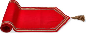 hello, tassels! a festive tasseled runner is a stylish and functional addition to your tablescaping essentials this season. featuring 100% cotton construction with handmade tassels, this runner is the perfect complement to your home, from holiday to everyday.