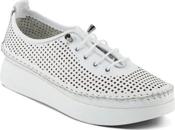 A perforated leather upper ensures airflow in this easy-on sneaker outfitted with stretchy laces and a cushioned insole for daylong comfort.