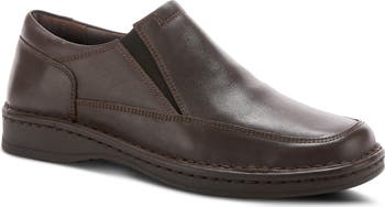 Supple leather and a squared toe offer modern charm on a slip-on loafer designed with a padded collar and removable insole for comfort and versatility.