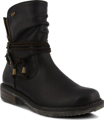 Feel flexibility and comfort under every step you slip into this moto-inspired bootie made from premium leather, lined with soft faux-fur lining and set on a durable stitched sole.