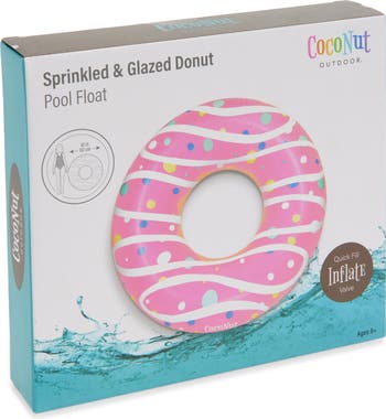 Relax while taking in some sun rays on this glazed and sprinkled donut pool ring durably made from heavy-duty vinyl for a playful addition to your summery adventures.