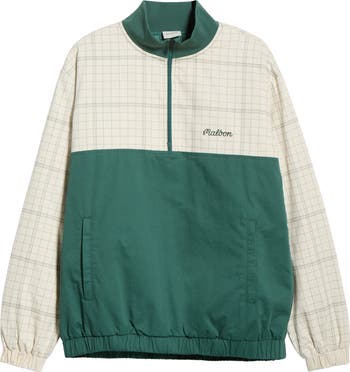 Panels of grassy green and a creamy check make an 18-hole favorite of a cotton pullover designed with a deep front zipper rising to a sporty ribbed neck. Roomy and relaxed, it won't inhibit your swing on the course or your celebrating at the clubhouse.