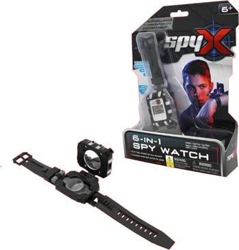 The Spy 6-in-1 Watch is an 6 function watch for secret missions day or night. The watch features traditional watch functions, but the special spy features are what makes it a SPY watch. This watch is equipped with an LED light, flip out telescope lenses, and a flip out signal mirror. Flip out the mirror to reveal a secret compartment to keep secrets from falling into enemy hands! The watch also comes with secret message drop capsules to help communicate with fellow spies. An essential piece to any agent's collection of spy toys. Bring a smile to your junior agents face as they use the 6-in-1 The Spy 6-in-1 Watch is an 6 function watch for secret missions day or night. SpyX provides junior agents with all of the gadgets needed to spy like a pro. Playing spy is a fun way for kids to use their imagination while learning valuable skills through role play. Fun toy for ages 6+. Collect all SpyX toys for the ultimate spy play experience.