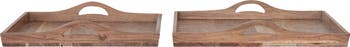 Square Acacia Wood Trays with Handles, Natural, Set of 2