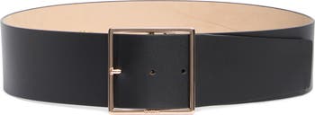 Geometric simplicity meets refined shine in this smooth Italian-calfskin belt with a polished square buckle.