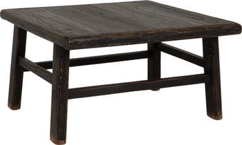 Ground your living space with the rich texture and timeless character of this Reclaimed Elm Wood Square Coffee Table. Crafted from solid reclaimed elm and finished in a deep antique brushed black, this table brings rustic warmth with unique grains and imperfections of reclaimed wood, creating a bold presence to rustic lodge, Japandi, or modern farmhouse settings. The square shape and substantial build make it an anchor piece—ideal for gatherings, cozy mornings, or styling with favorite books and natural elements.