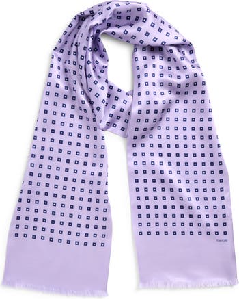 Softly fringed edges contrast against the precise squares that punctuate this luxurious silk-jacquard scarf.