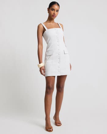 Designed with a square neckline and button-down front, this dress balances structure with ease in a warm-weather silhouette.