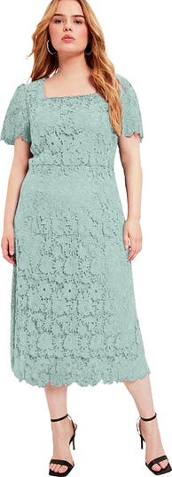 This romantic A-line dress features all-over lace and a statement square neckline for an ultra-feminine take on a classic style. Delicate touches include ruching and a scallop-trim at sleeves and hem. It is a dress that is perfect for date nights and casual cocktail parties.