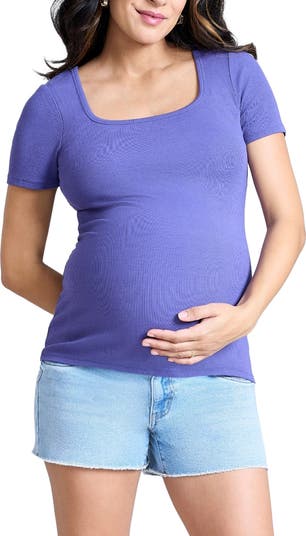 Motherhood's short-sleeve square neck tee is crafted from soft micro rib fabric and offers a stylish, elevated look that grows with you. The square neck adds a touch of sophistication, making it perfect for lounging or layering during your pregnancy and beyond!