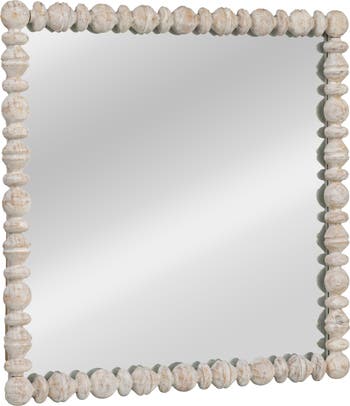 - An artistic statement, this square wall mirror showcases a raised dowel design with a charming, whitewashed finish