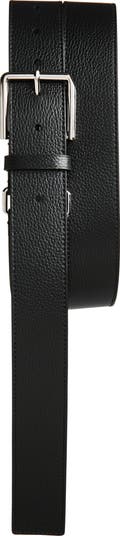 A beveled buckle anchors this sophisticated belt that's crafted in Italy from glossy, grained calfskin leather.