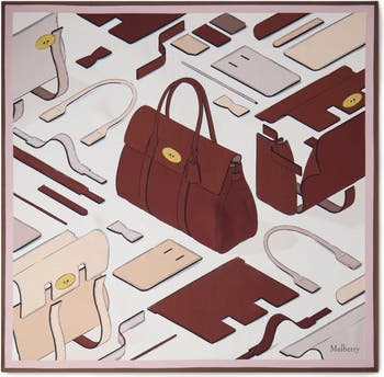 This printed scarf is made from 100% silk twill, and can be worn either around the neck, or attached to your favourite Mulberry bag.