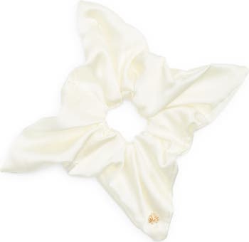 A trusty silky scrunchie is reimagined in a square silhouette and punctuated with petite logo hardware for a hint of gleam.