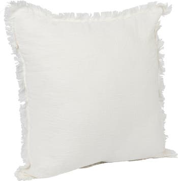 Square Stonewashed Linen Pillow with Fringe, Ivory