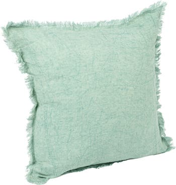 Square Stonewashed Linen Pillow with Fringe, Mint
