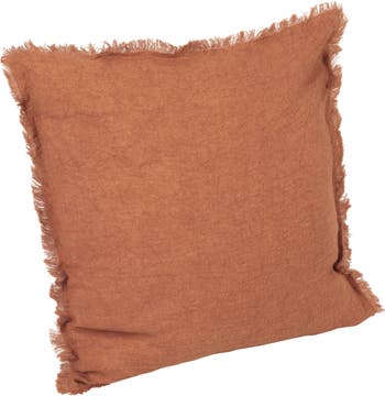 Square Stonewashed Linen Pillow with Fringe, Rust