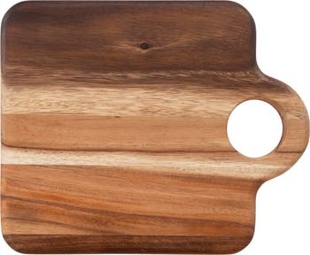 Square Suar Wood Cutting Board with Handle, Natural