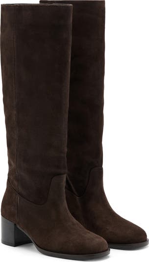 A squared-off toe and stacked heel bring walkable balance to a versatile boot featuring a streamlined silhouette and shaped from supple suede.