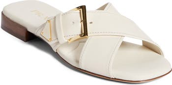 A square toe and signature golden hardware bring iconic elevation to this Italian-leather sandal.