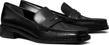 A modern square toe sharpens the profile of this refined loafer, fashioned in smooth leather with a subtle hardware logo.