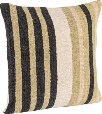 Square Woven Cotton Blend Chenille Pillow with Stripes, Multicolor