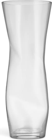 Intriguing from every angle, this vase gets its shape from being squeezed by hand in two places after being blown.