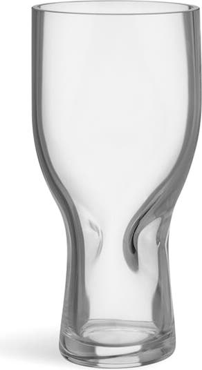 Intriguing from every angle, this vase gets its shape from being squeezed by hand in two places after being blown.