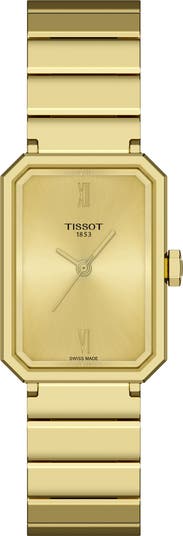 This Art Deco-inspired watch takes it cue from a 1920's Tissot design and offers an eye-catching silhouette with a geometric shape case boasting a beautiful sunray dial and precise Swiss movement.
