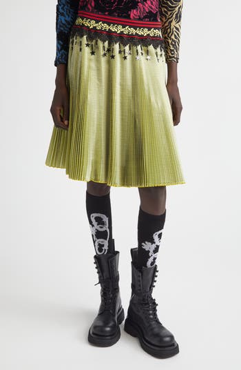 Show off your prep-school spirit in this pleated plaid A-line skirt from Chopova Lowena's 'Cheerlore' collection—a fun fusion of American varsity culture, Bulgarian folklore and girlhood mythology filtered through the design duo's punky/playful lens. Floral trim, star‑shaped sequins and elaborate beading team up with varsity codes for a true maximalist statement.