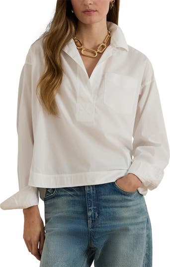 Hit refresh on white shirt style with a crisp cotton option that pops on overhead.