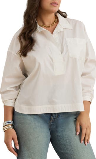 With a half-button placket and a relaxed fit, this cotton-broadcloth top is effortlessly chic and versatile for everyday outfits.