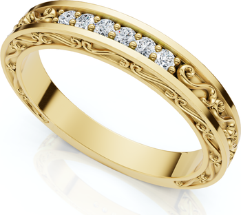 Stackable Diamond Wedding Ring Scroll Pattern Band 14k Gold Lab Grown