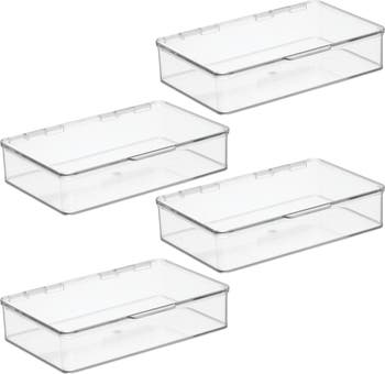 - SMART STORAGE - Create a functional storage solution anywhere you need with the iDesign Hinged-Lid Storage Box; Its generous capacity has room to store your most reached-for essentials, from small kitchen gadgets to pantry staples to snacks and more; The versatile design blends seamlessly with your decor, allowing you to keep various kitchen essentials accessible and contained; Set of 4