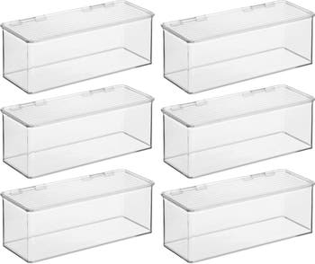 - SMART STORAGE - Create a functional storage solution anywhere you need with the iDesign Hinged-Lid Storage Box; Its generous capacity has room to store your most reached-for essentials, from small kitchen gadgets to bathroom essentials to office supplies and more; The versatile design blends seamlessly with your decor, allowing you to keep various essentials accessible and contained; Set of 6