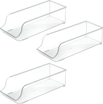 A more orderly fridge starts by designating a spot for beverages, and the iDesign Can Dispenser Set achieves just that. This dispenser holds up to nine standard-sized beverage cans, making it easy to grab your favorite drink. The sloped design allows cans to roll gently to the front for optimal visibility, and the raised front edge and side walls ensure nothing rolls out of place. This organizer also corrals cans of soup and pet food in the pantry or cabinet for smart storage.