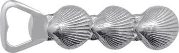 Handcrafted from recycled aluminum, this stacked clamshell bottle opener brings coastal charm to your tablescape and is perfect for seaside celebrations.