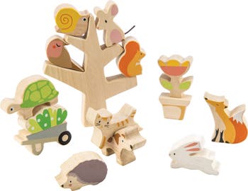 A series of stackable garden critters comes out to play in a handsome wood set that encourages logical thinking and inspires imaginative play.