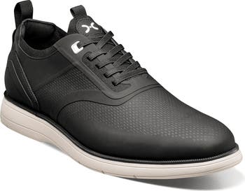 Laser-cut perforations add timeless sophistication to a streamlined sneaker fitted with a cushioned insole for comfortable wear.