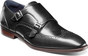 Broguing details define the style of a wingtip leather double monk strap shoe that features an arch supporting footbed designed for all day wear.