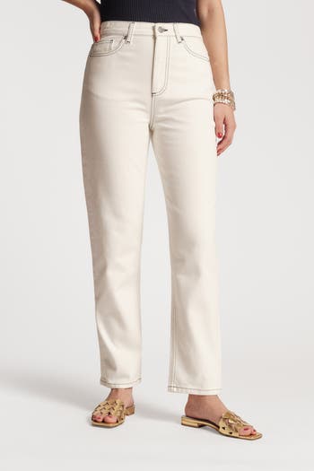 These high-rise jeans are made from soft denim with a hint of stretch|feature a zip fly with a top button closure|classic five-pocket styling