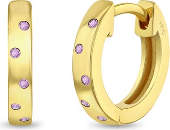 Brighten up your little girl's style with these adorable small huggie hoop earrings. Made from 14k gold over sterling silver, they sparkle with pink cubic zirconia for a playful touch. Designed with a hinged opening and a secure snap closure, they offer both comfort and a sweet fit for everyday wear. A sweet and timeless gift she'll treasure, elegantly packaged in a complimentary gift box.