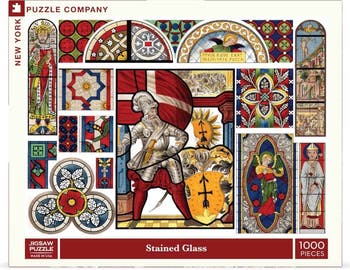 Step into a world of timeless artistry with the Stained Glass 1000 Piece Jigsaw Puzzle. Featuring a stunning collage of intricate stained-glass designs, this puzzle showcases historical and religious motifs, vibrant patterns, and radiant colors inspired by traditional church windows. From knights and angels to intricate floral details, each panel is a masterpiece that tells its own story.\r\n\r\nCrafted for puzzle enthusiasts, this high-quality puzzle is made in the USA with premium materials that ensure vibrant colors and lasting durability. Each of the 1000 pieces is uniquely cut using a random die-cut process, offering a one-of-a-kind assembly experience that is both exciting and satisfying. The precision fit of the pieces brings the stunning artwork to life, creating a captivating final image that celebrates artistry and history.\r\n\r\nPerfect for art lovers, history buffs, and anyone who enjoys a rewarding challenge, the "Stained Glass" Jigsaw Puzzle transforms your puzzling time into an unforgettable journey. Whether you’re tackling it solo or sharing the experience with friends, this puzzle promises hours of entertainment and a breathtaking masterpiece you’ll love to admire. Bring the beauty of stained glass into your home—order now and piece together a true work of art!