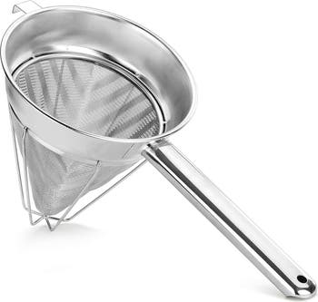 The Norpro Stainless Steel Chinois/China Cap Strainer is perfect for creating smooth sauces, soups, broths, and purees. Its fine mesh cone design filters out seeds and pulp, while the stainless steel construction provides long-lasting durability.