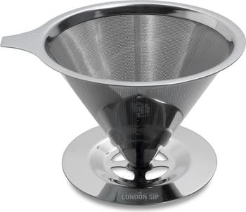 At the London Sip, our mission is to provide you with the highest quality tools to produce cafe-quality coffee and tea from the comfort of your own home. We have designed the perfect stainless-steel pour-over coffee dripper (manual coffee brewer) to allow you to enjoy great pour-over coffee at home or on the go. The stainless-steel construction will not impart any flavors into your coffee like other materials can for a great tasting cup of coffee every time. The dripper utilizes a reusable stainless steel coffee filter that is eco-friendly by eliminating the need for paper coffee filters. In addition to there being less waste, there is zero chance of opening your cupboard in the morning only to find out that you are out of filters and unable to make coffee. The larger size of the reusable filter allows the proper amount of grounds to be used for larger pours while leaving adequate room for the bloom and addition of water. The coffee dripper is extremely easy to use, does not require a specialty filter, and clean-up is a snap. The large base of the dripper easily sits on your cup or to-go mug; add coffee and pour hot water over the grounds. When the brewing process is complete you simply rinse out the dripper and enjoy your coffee. The London Sip 1-4 cup stainless steel pour-over coffee dripper is a perfect addition to your morning coffee routine allowing you to brew a great pour over coffee directly into your cup. This dripper is ideal for those who need to brew more than a single serving of coffee.