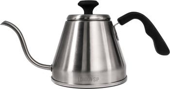 At the London Sip, our mission is to provide you with the highest quality tools to produce cafe-quality coffee and tea from the comfort of your own home. We have designed the perfect stovetop kettle, crafted from quality stainless steel, to be used with both traditional (ceramic, electric, gas) and induction style stovetops. What sets this kettle apart, aside from the ability to be used with all stovetop styles, is the color-coded thermometer integrated into the lid. Each color (with beverage callout) indicates the perfect temperature to warm water for teas or pour over coffee, the perfect temperature for warming milk and the ideal temperature for warming hot beverages for children. The goose neck spout offers precise pouring and control, essential to a good pour over coffee, while the tight-fitting lid prevents the lid from falling off when pouring or moving the kettle within the kitchen. In addition, the heat proof handle is angled away from the kettle keeping your hand further away from the heat of the kettle and stove. The 1.2 liter capacity is ideal for making your daily coffee or tea or for making up to three standard coffee cups worth of your favorite beverage to share with friends.