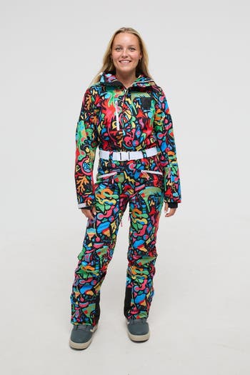 Model information - Height 5ft 6 | US SIZE 4 | Wearing size Small At a Glance Features: Are you bored of plain black, navy and grey ski suits? US TOO.... You need fun and colour on the mountains! We are empowering you to rip up the slopes with panache & style, whilst dropping jaws & turning heads as you strut into Après like a boss as the beat drops. On top of this all of our outerwear is made from recycled polyester meaning you can look amazing and do your bit for the planet at the same time! The OOSC women's ski suit is the only piece of ski clothing you'll ever need, from dropping cliffs to dropping jagerbombs at Après, this one piece will keep you warm and dry all season long! The Women’s fit is figure hugging slim fit, fitted through the hips & bum; if you want a more relaxed fit try our women’s curved suit range Other Features: Water Proof YKK Exposed Zippers Lift Pass Pocket Velcro Adjustable cuffs for comfort Goggle Pocket Helmet Adaptable Hood Reinforced Durable Ankle Patches Shaped Elbows & Knees Elasticated Ankle Gaitors Adjustable ankle gusset Elasticated Waist & Adjustable Belt Internal mesh pocket 3 external pockets Full list of our technical features. OOSC are extremely proud to have be able to say that ALL of our outerwear is made from Recycled Polyester and each ski suit is made from at least 100 plastic bottles!! (Read about how our suits are made from plastic bottles) odel information - Height 5ft 6 | UK size 6 to 8 | Wearing size Small At a Glance Features: Are you bored of plain black, navy and grey ski suits? US TOO.... You need fun and colour on the mountains! We are empowering you to rip up the slopes with panache & style, whilst dropping jaws & turning heads as you strut into Après like a boss as the beat drops. On top of this all of our outerwear is made from recycled polyester meaning you can look amazing and do your bit for the planet at the same time! The OOSC women's ski suit is the only piece of ski clothing you'll ever need, from dropping cliffs to dropping jagerbombs at Après, this one piece will keep you warm and dry all season long! The Women’s fit is figure hugging slim fit, fitted through the hips & bum; if you want a more relaxed fit try our women’s curved suit range Other Features: Water Proof YKK Exposed Zippers Lift Pass Pocket Velcro Adjustable cuffs for comfort Goggle Pocket Helmet Adaptable Hood Reinforced Durable Ankle Patches Shaped Elbows & Knees Elasticated Ankle Gaitors Adjustable ankle gusset Elasticated Waist & Adjustable Belt Internal mesh pocket 3 external pockets Full list of our technical features. OOSC are extremely proud to have be able to say that ALL of our outerwear is made from Recycled Polyester and each ski suit is made from at least 100 plastic bottles!! (Read about how our suits are made from plastic bottles)